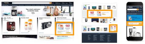 展示型推广目前在亚马逊首页(包括PC和移动端)上有多个展示位置,更有利于触达不同阶段的受众。