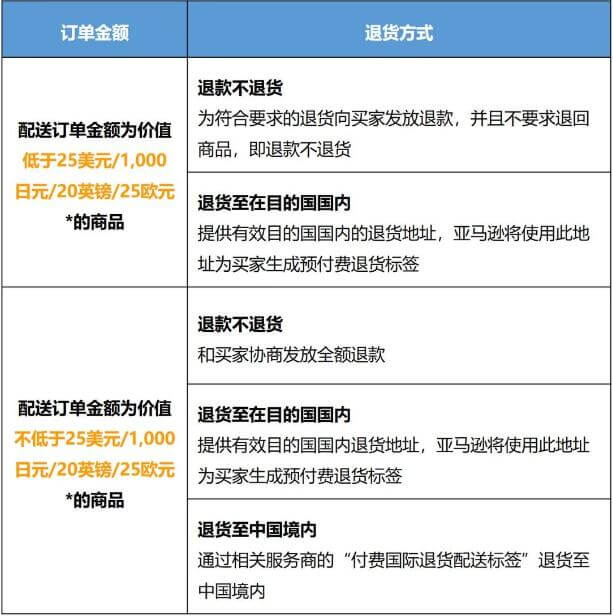 建议您在上述3种退货方式中选择适合自己的方式。但请注意,无论您选择哪种处理订单商品退货方式,请遵守亚马逊退货政策。