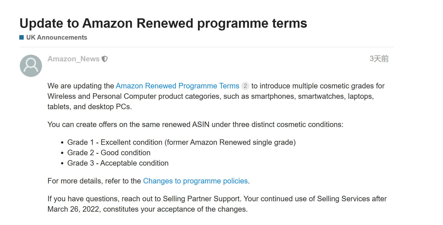 有关更多详细信息,请参阅“Amazon Renewed计划政策更改”。